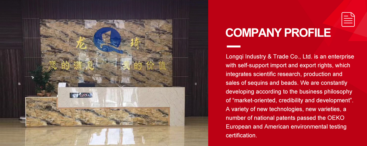• Longqi Industry & Trade Co., Ltd. is an enterprise with self-support import and export rights,which integrates scientific research, production and sales of sequins and beads.